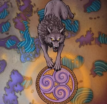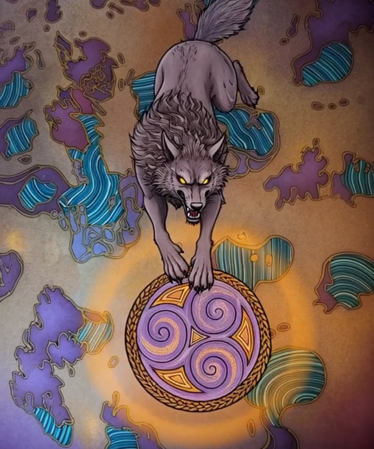 Sköll. Son nom est presque un grognement. Il court après Sól, la déesse du Soleil, sans jamais s’arrêter. Hati court après Máni, le dieu de la Lune. Leur faim est sans fin. Quand leurs crocs s’approchent trop, le jour s’assombrit, la nuit s’épaissit – une éclipse, un souffle froid sur la nuque du monde.